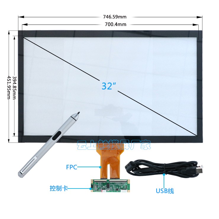 像我们云上触摸屏厂家的这款32寸电容触摸屏,就是支持手触控也支持笔触动并且可以带水触控屏